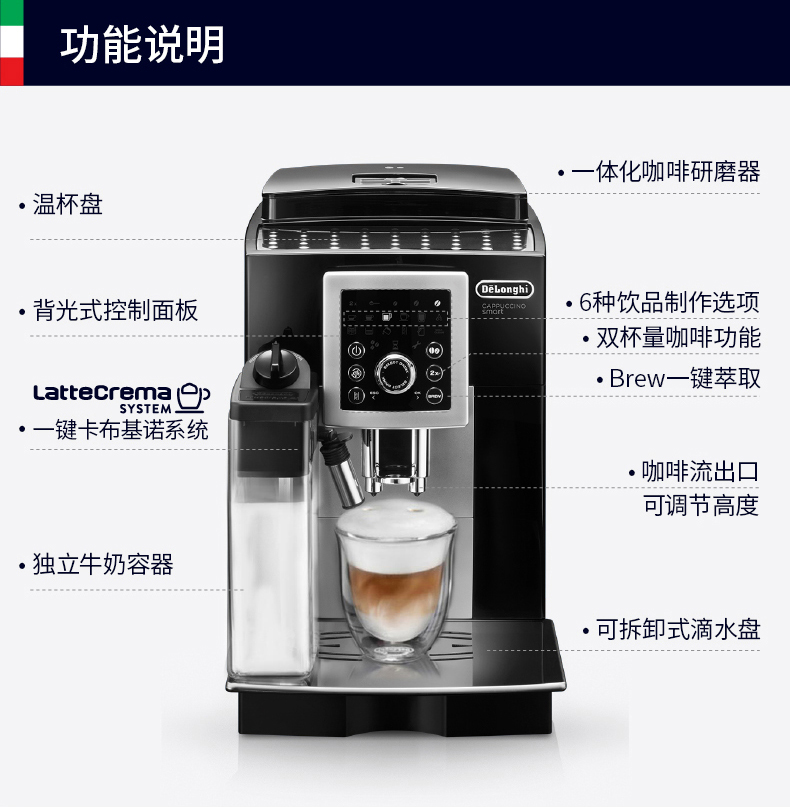 一键式制作:卡布奇诺,拿铁,美式,浓缩咖啡等 适合家用或小型办公